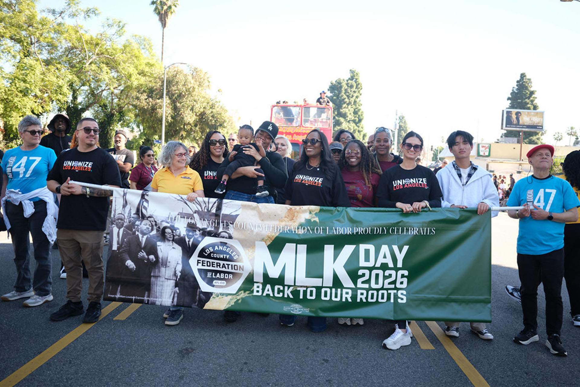 On a picture-perfect day, AFM Local 47 leaders joined thousands of Angelenos on Jan. 19 for the annual MLK Jr. Kingdom Day Parade...