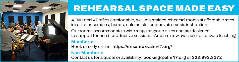 This month we’re introducing a new slimmed down version of Overture, making it easier to highlight the most important news from Local 47. We hope you enjoy this work in progress. We are also in the process of redesigning our website to better feature our members and their work. Check it out at www.afm47.org/press and let us know what you think.