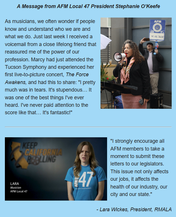 We need to continue to ring the alarm to our elected officials to remind them that our California Film and Television Jobs program: