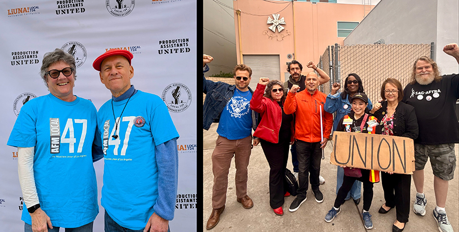 Left: AFM Local 47 Secretary/Treasurer Gail Kruvand and Vice President Marc Sazer. Right: A cross-section of entertainment labor union members and leaders.