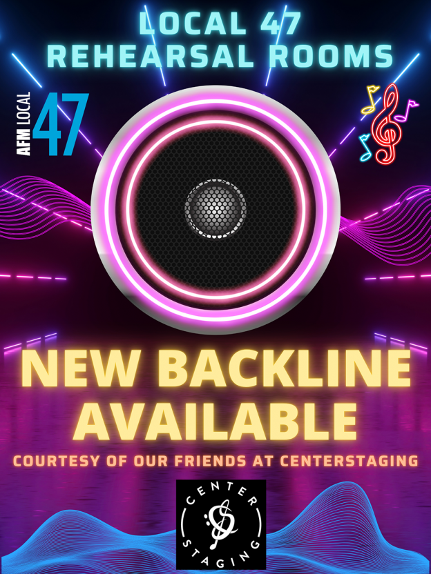 AFM Local 47 would like to thank our neighbor CenterStaging for generously donating four bass amps to our rehearsal room backline. A bass amp stack — from brands like Gallien Krueger, SWR, and TC Electronics — will now be stationed in Rooms 3, 4, 5, 6, and 7.