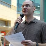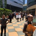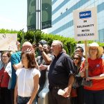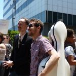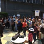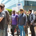 Musicians marched to the front doors of the Alliance of Motion Picture and Television Producers to hand-deliver hundreds of petitions signed by musicians who work in the industry, where studio representatives denied them entrance. “They are in this building and they are willing to deny us behind closed doors, but they will not do it in the open,” said musician and organizing committee member Jason Poss. “They will receive these petitions, even though they don’t want to receive them today. This is a victory. We have shown what is going on and they cannot hide from us any longer. This is just the beginning.”